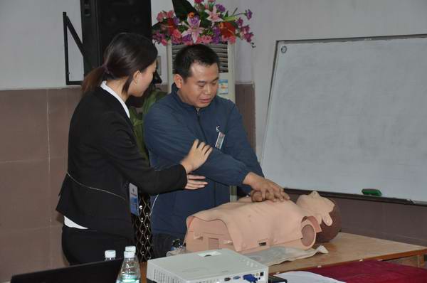 為了充分發(fā)揮本次培訓(xùn)的作用,讓大家可以把理論與實(shí)踐相結(jié)合,并學(xué)以致用。特在現(xiàn)場抽出人員進(jìn)行模擬學(xué)習(xí)心肺復(fù)蘇急救、人工呼吸、穴位按摩等。現(xiàn)場在活躍、愉快的氣氛中結(jié)束了本次的培訓(xùn)講座。