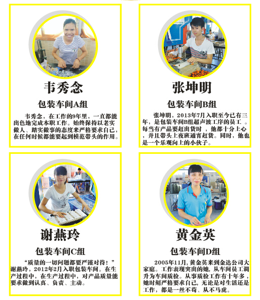 8月4日, 2016年度廣東金達(dá)勞動標(biāo)兵完滿落幕。該活動自7月初以來,歷時(shí)了1個(gè)月時(shí)間,經(jīng)過前期激烈的投票評選,金達(dá)公司堅(jiān)持公開、公平、公正的評選原則,建立管理層評選團(tuán)評審,實(shí)行員工代表無記名投票方式;經(jīng)過激烈的投票評選,最終廣東金達(dá)“2016年度勞動標(biāo)兵”名單火熱出爐: